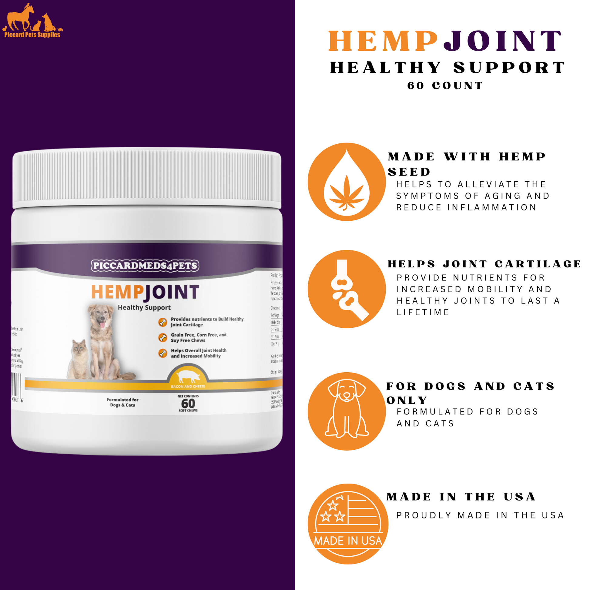 Piccardmeds4pets Hemp + MSM Joint Support Chews for Dogs and Cats 60CT + FREE Bandana!
