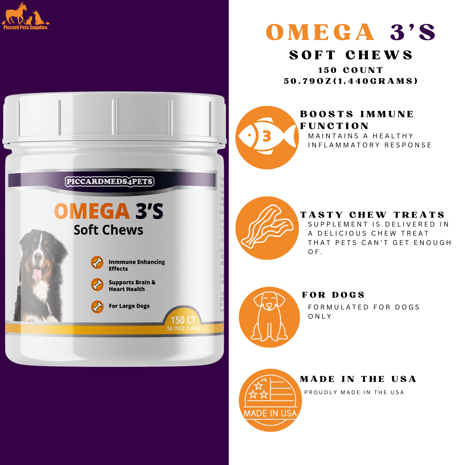 PiccardMeds4pets Skin and Coat Omega-3 for Large Dogs 150 Soft Chews